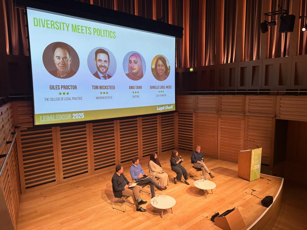 Legal Cheek publisher Alex Aldridge chaired a discussion on how government policy is shaping law firm strategy — particularly around DEI and the uncertainty surrounding funding for Level 7 solicitor apprenticeships.