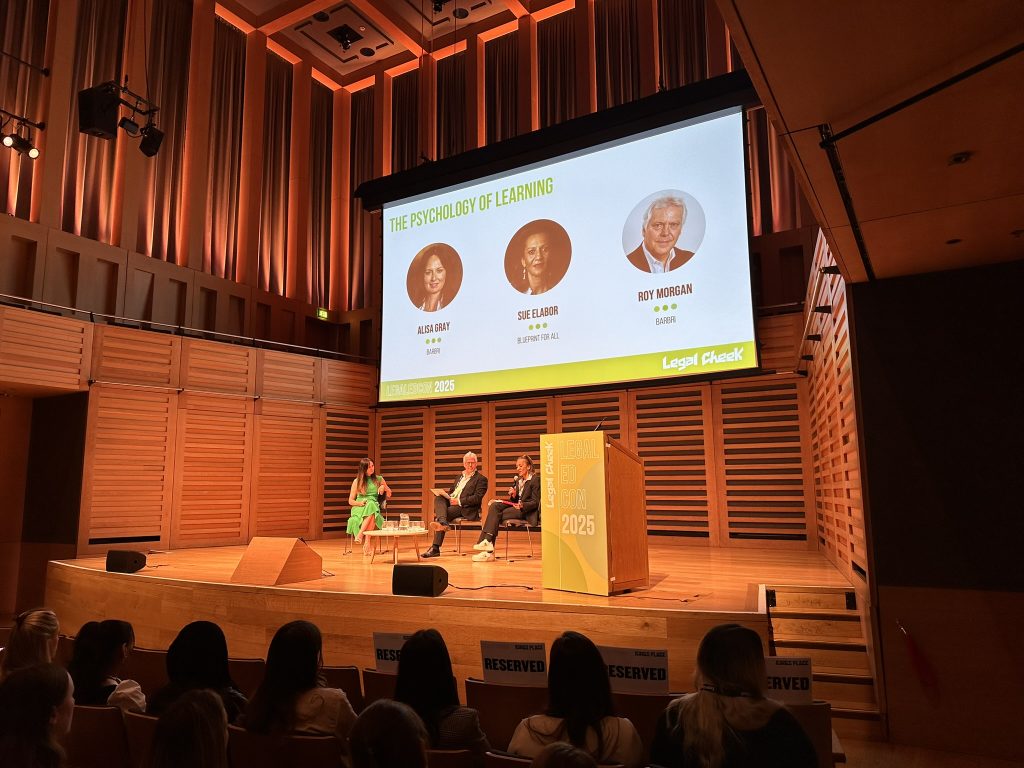 Alisa Gray, Director of Learning at BARBRI, chaired the psychology of learning session. This dynamic discussion explored how neuroscience and psychology are shaping modern legal education. Joined by BARBRI colleague Roy Morgan and Sue Elabor of social justice charity Blueprint for All, the panel explained how learning actually works — and how legal educators can make what they’re teaching stick. Gray, a qualified lawyer turned organisational psychologist, introduced the session by challenging attendees to think of learning as “rewiring the brain”.