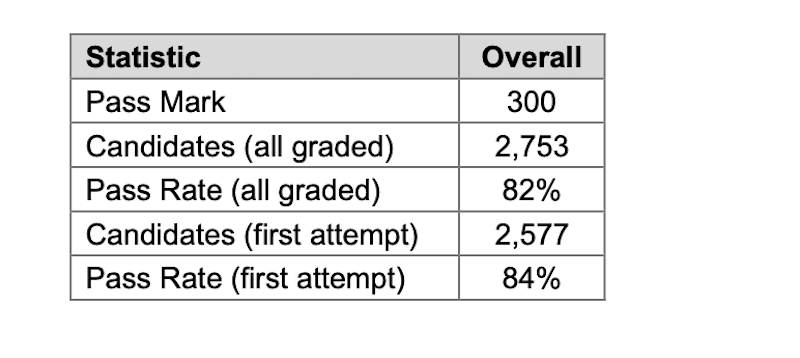 The April–May 2025 sitting saw 2,753 candidates sit the assessment, with first-time sitters — making up the bulk of the cohort at 2,577 candidates — achieving an even higher pass rate of 84%.